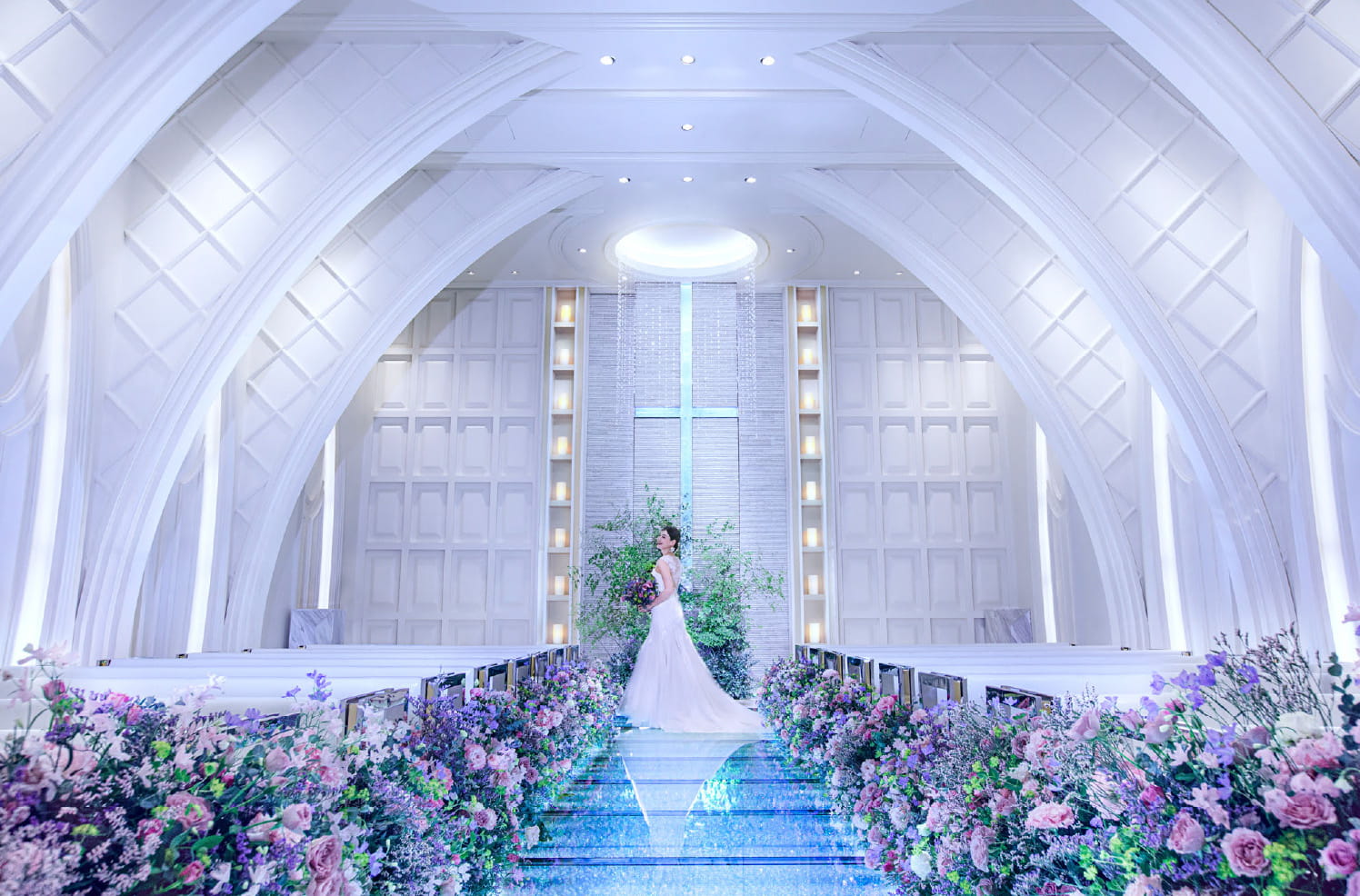 純白の聖堂ときらめくダイヤモンドのバージンロードは