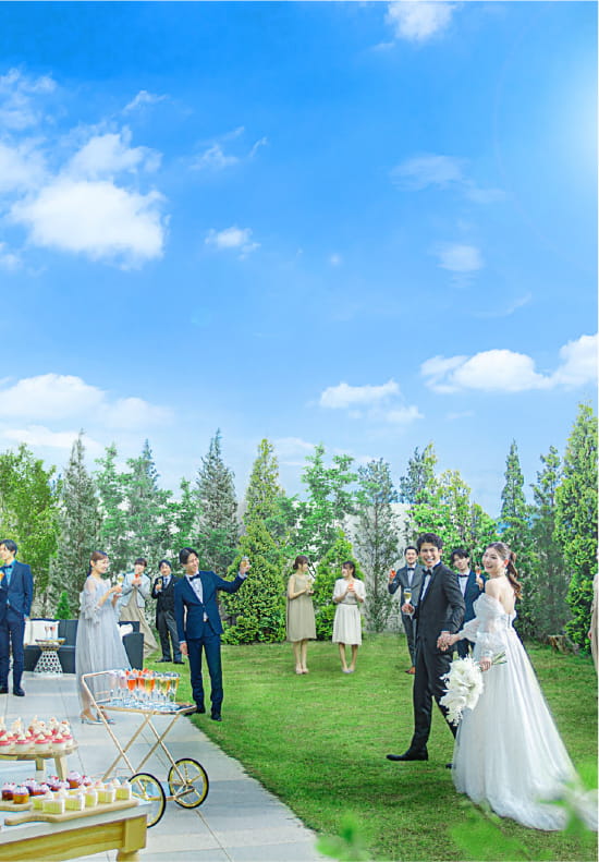 青空と緑に包まれた開放的な空間で、印象に残るセレモニーが叶います。
