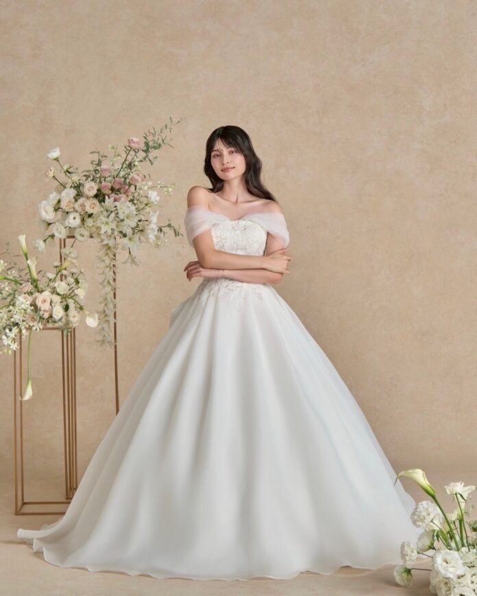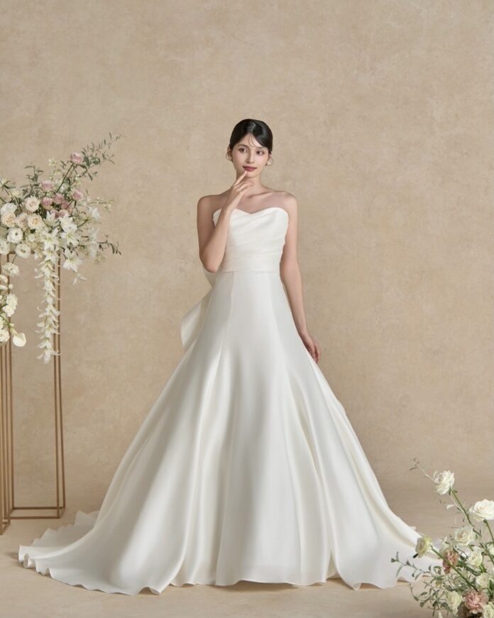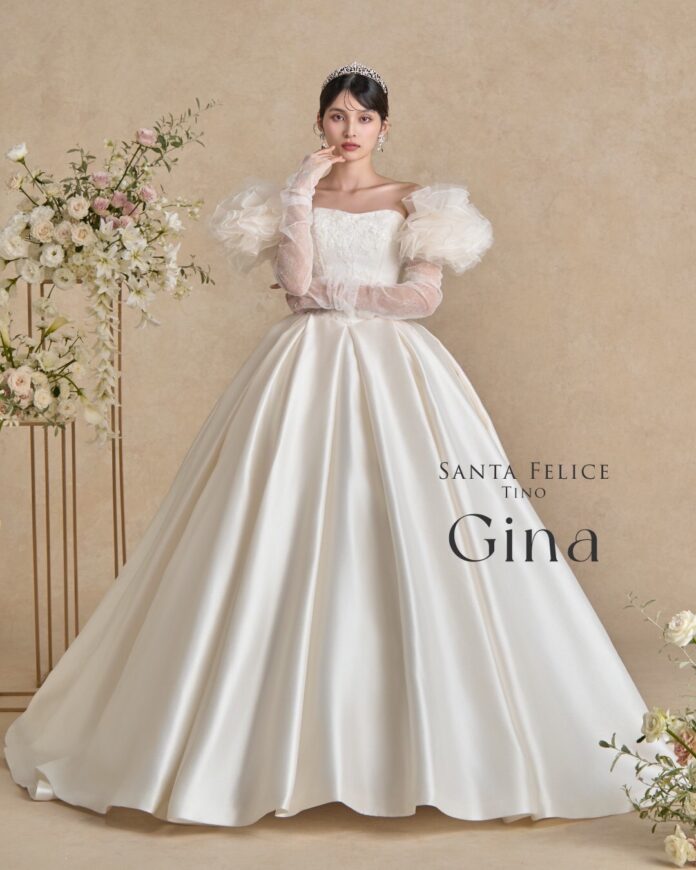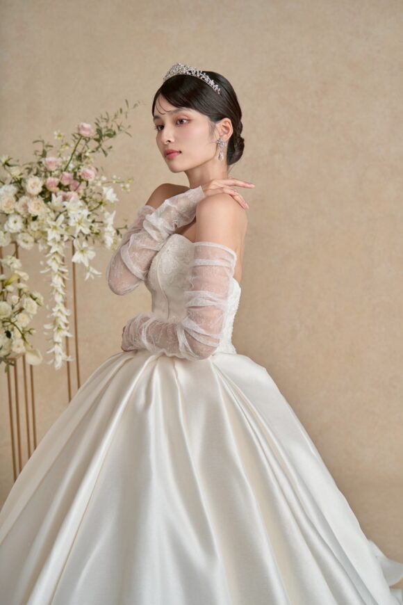 袖を添えればロマンティックに、外せばすっきりとしたビスチェドレスへ。