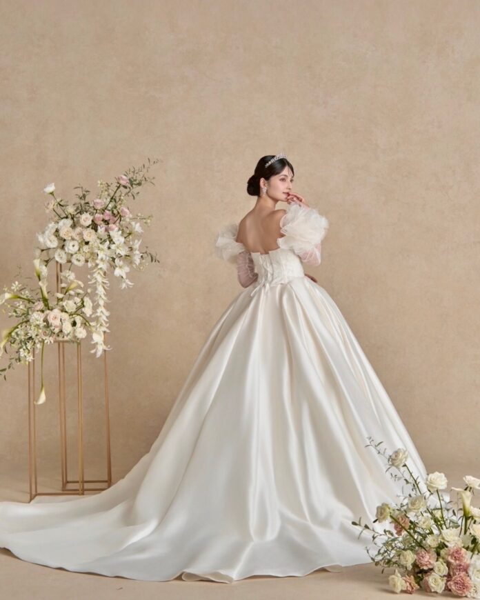 振り返った瞬間、ゲストの記憶に残る一着です。
