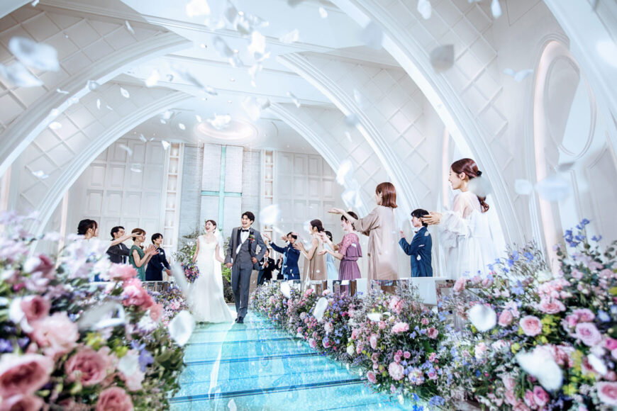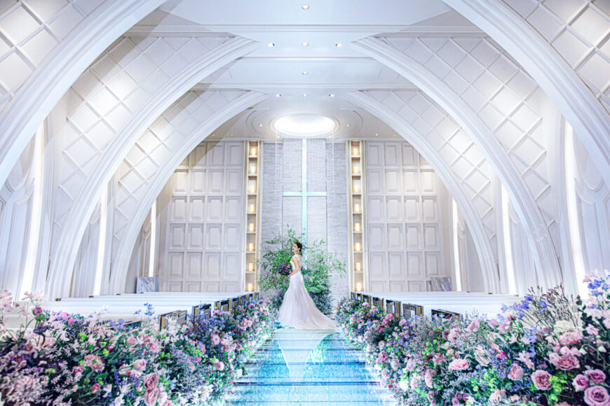 清らかな白と光の中で行うセレモニーを体感。感動的な演出だけでなく、ゲストとの距離感も大切にしたチャペルの魅力をご紹介します。