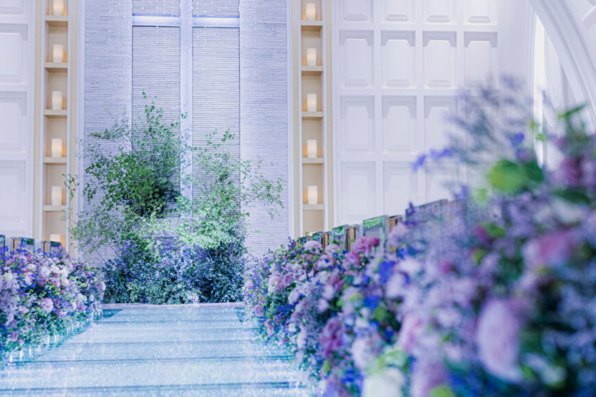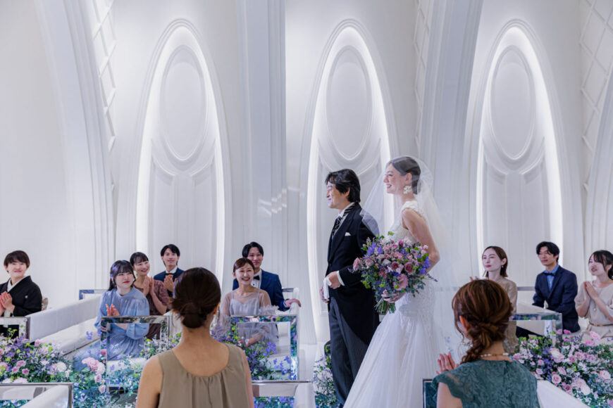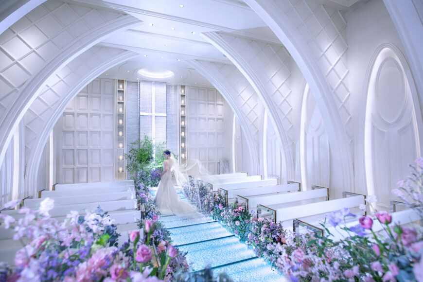 清らかな白と光の中で行うセレモニーを体感。感動的な演出だけでなく、ゲストとの距離感も大切にしたチャペルの魅力をご紹介します。