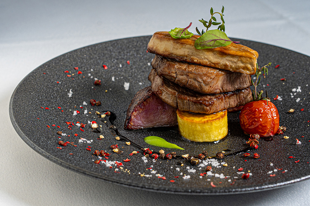 柔らかな牛フィレ肉と芳醇なフォアグラを重ねた三層は、ふたりの人生がこれから幾重にも重なり合い、深まっていく愛を象徴しています。