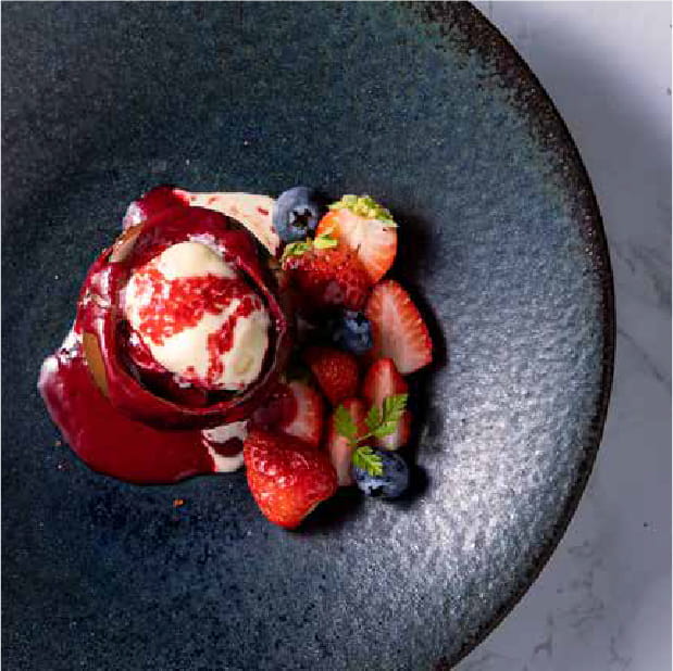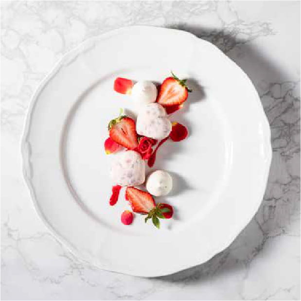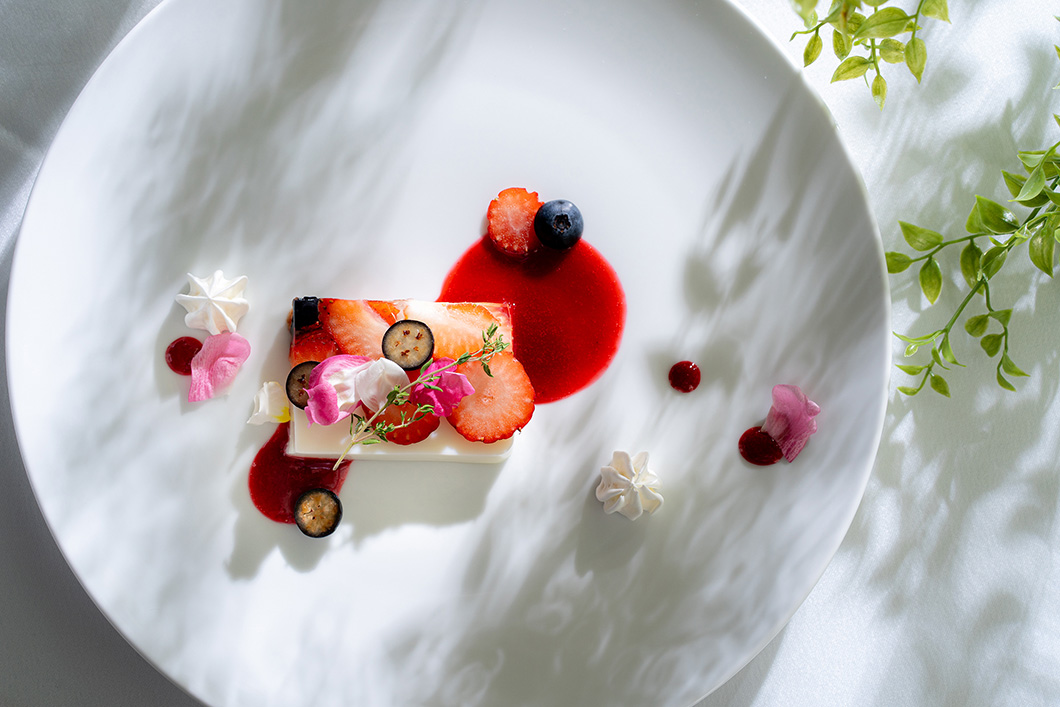 純白のパンナコッタは、清らかな愛の誓いを、鮮やかなベリーと花びらは、ふたりの人生を彩る特別な瞬間を象徴。