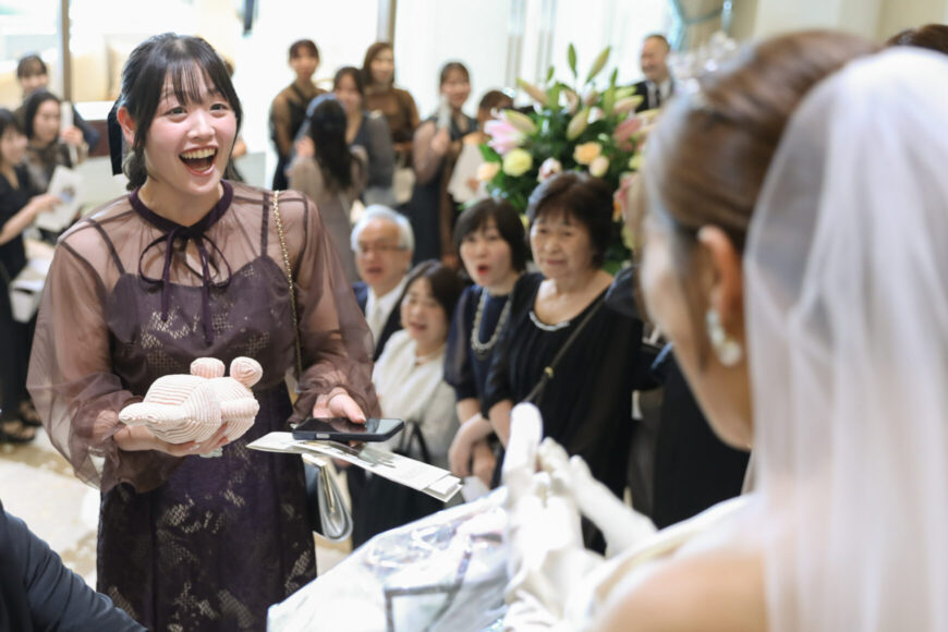 新婦様が胸に抱えられた贈り物には、これまでの人生で大切に育ててくださったご両親への想いがぎゅっと詰まっています。