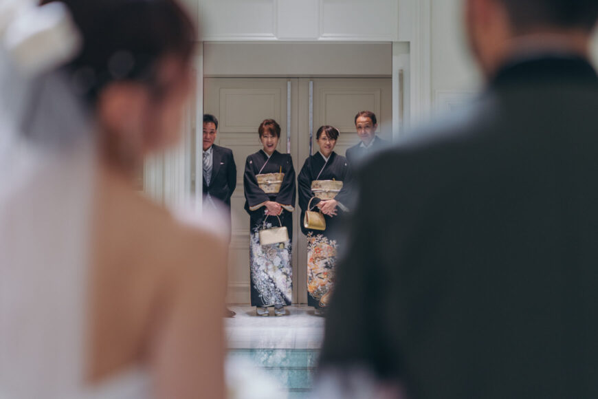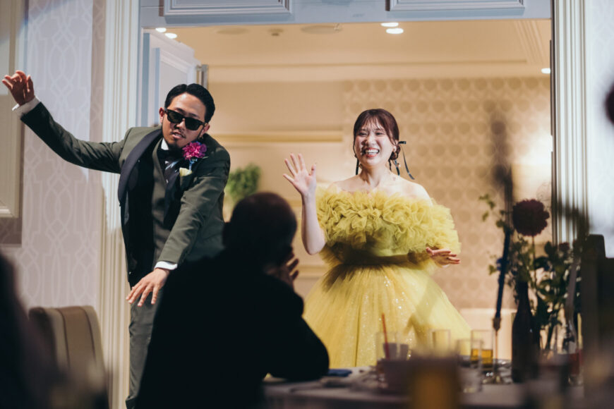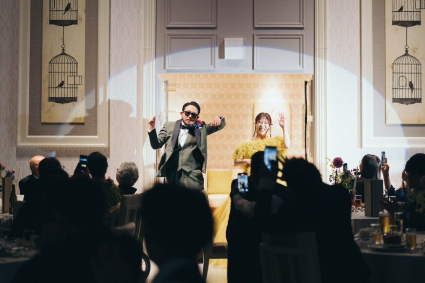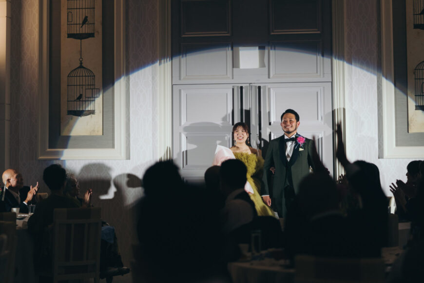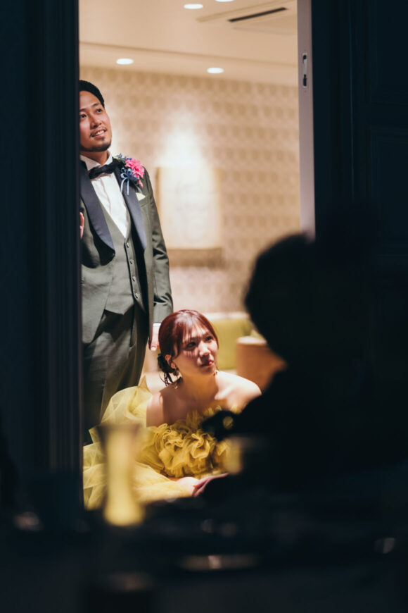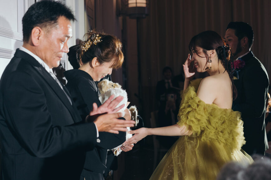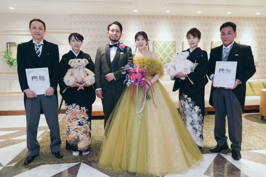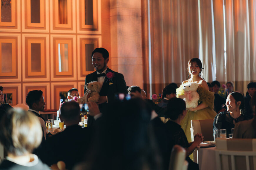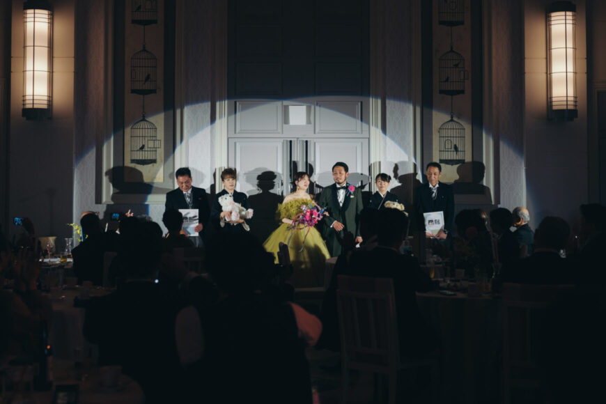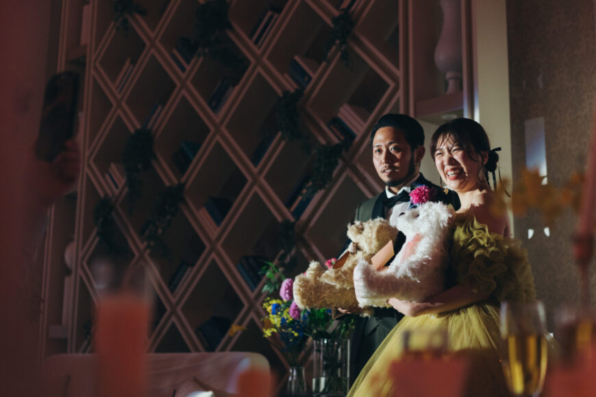 小さな頃の写真を等身大にしてお迎えする演出は、おふたりらしさと温かさに溢れていて、