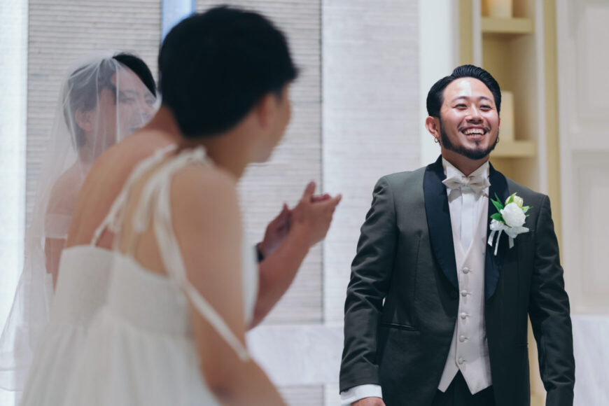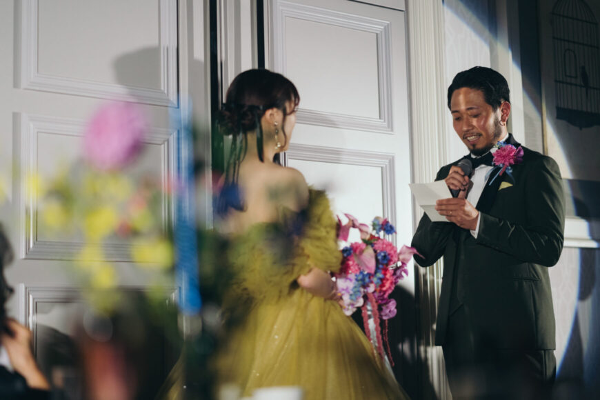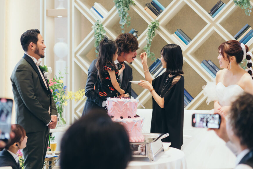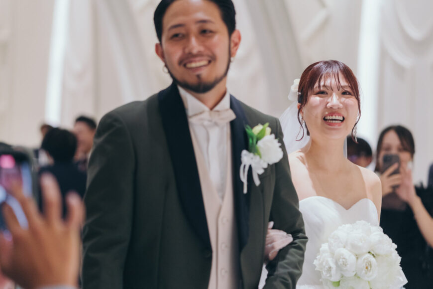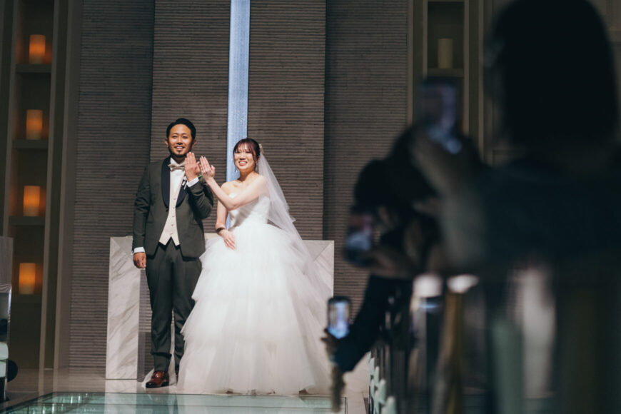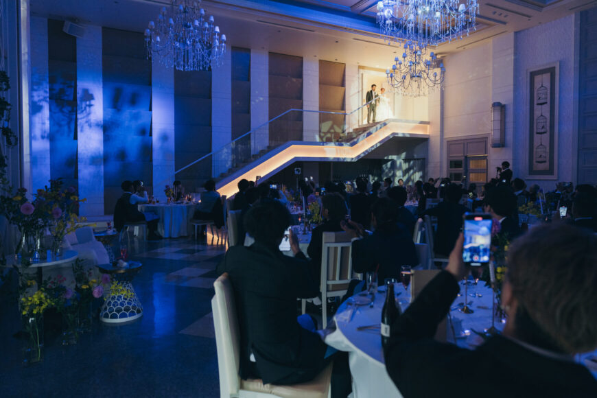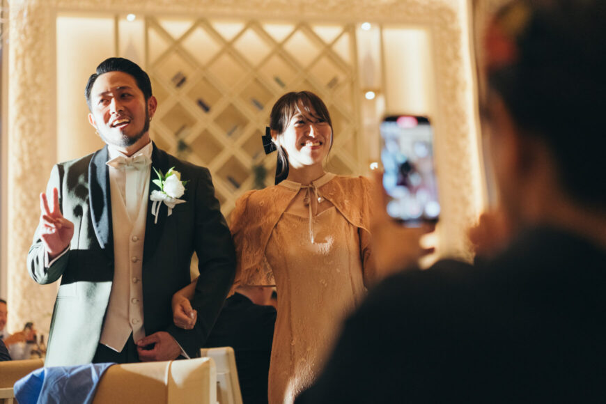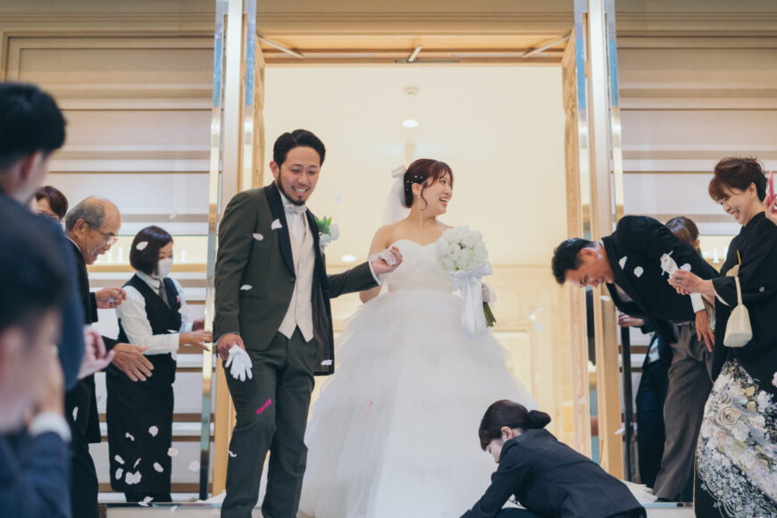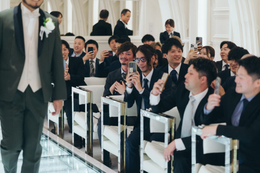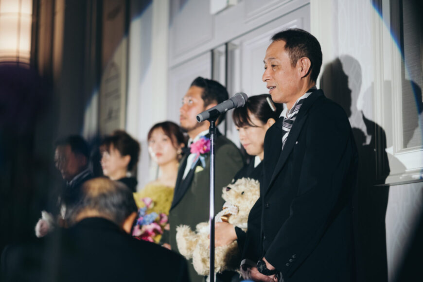 小さな頃の写真を等身大にしてお迎えする演出は、おふたりらしさと温かさに溢れていて、