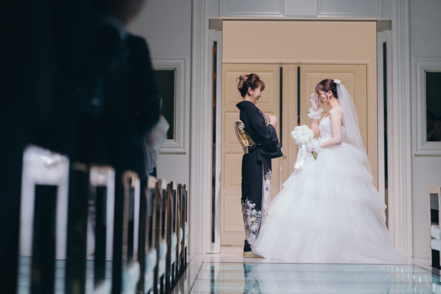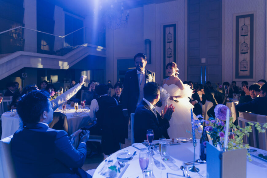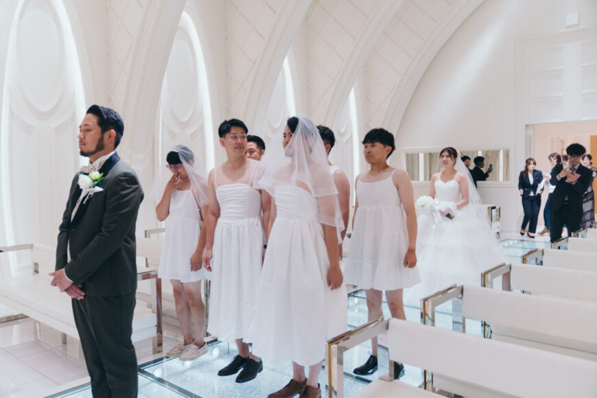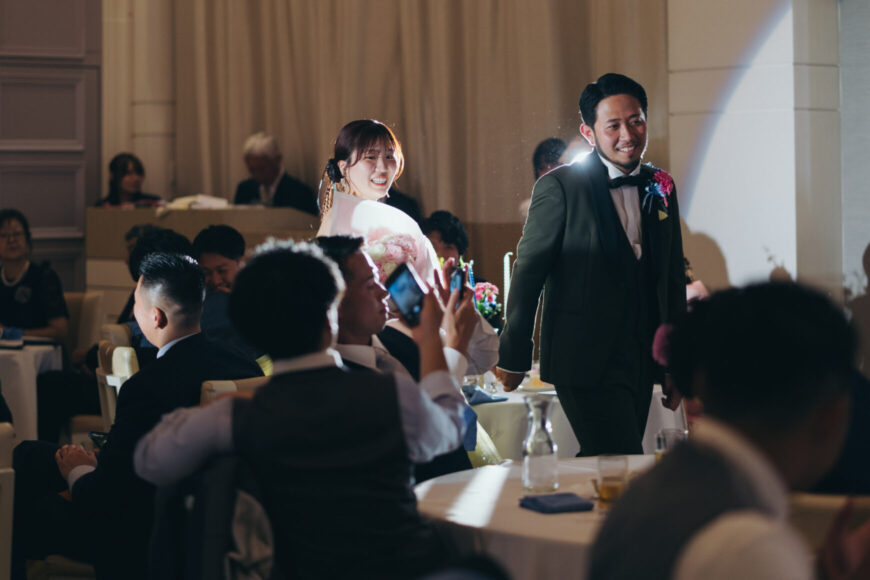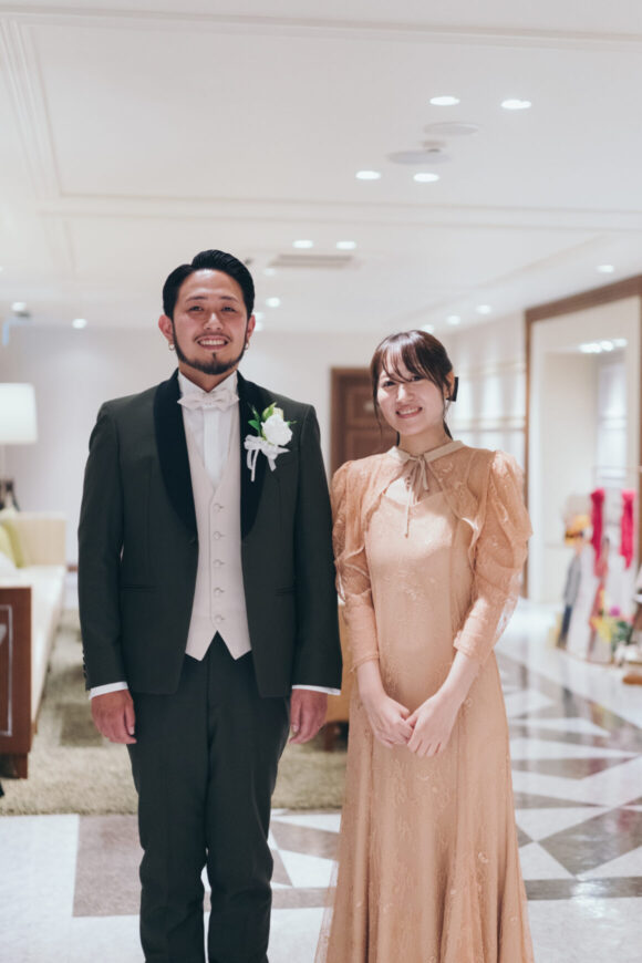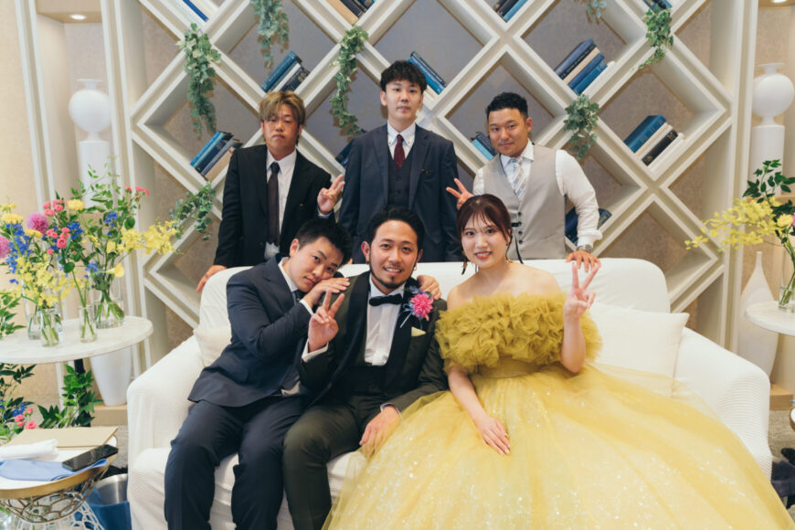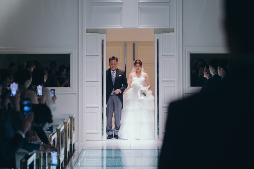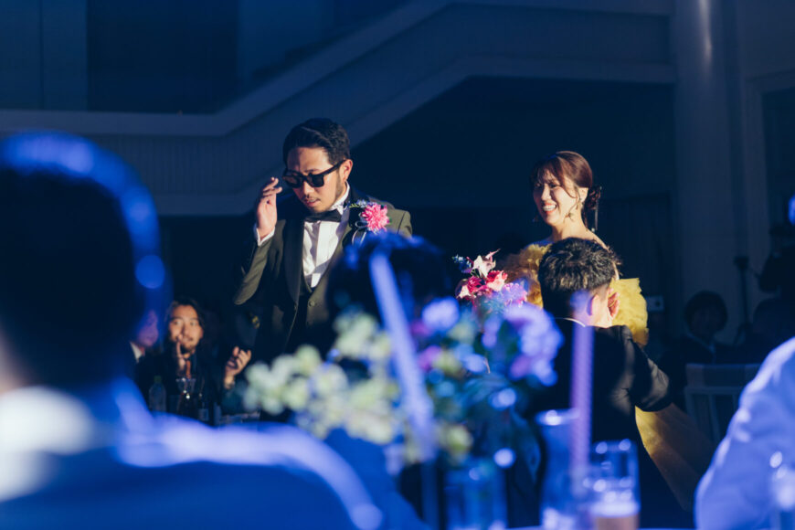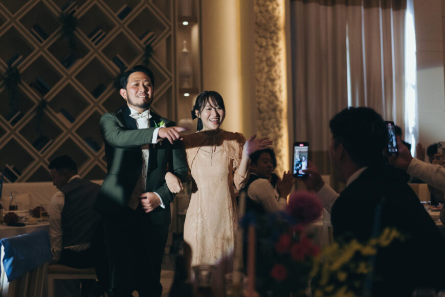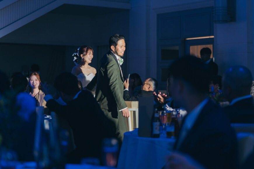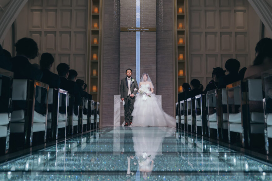 小さな頃の写真を等身大にしてお迎えする演出は、おふたりらしさと温かさに溢れていて、