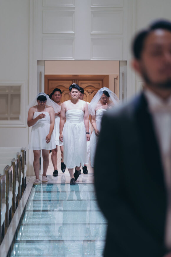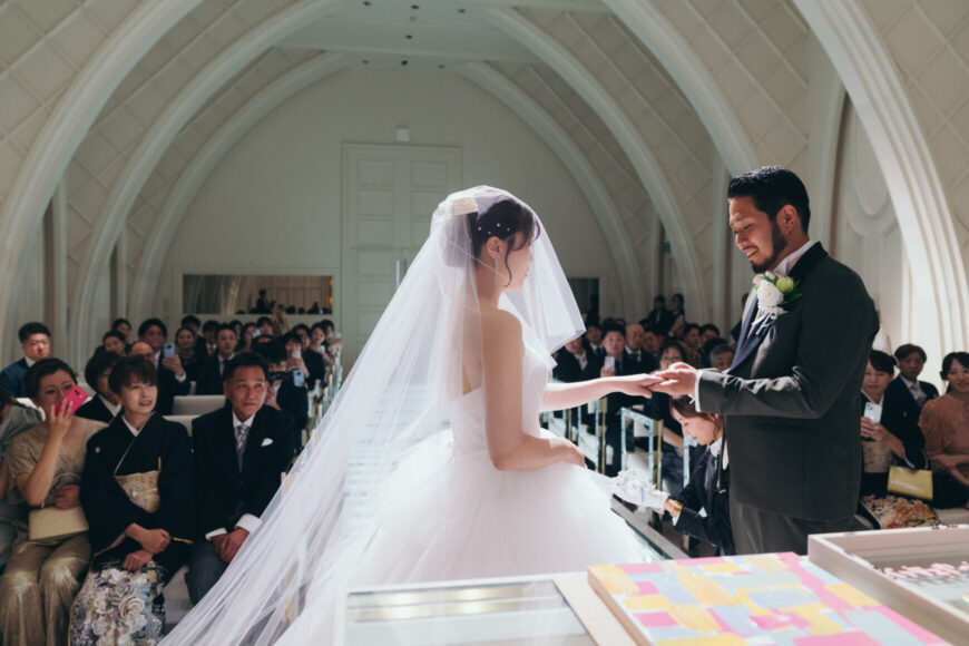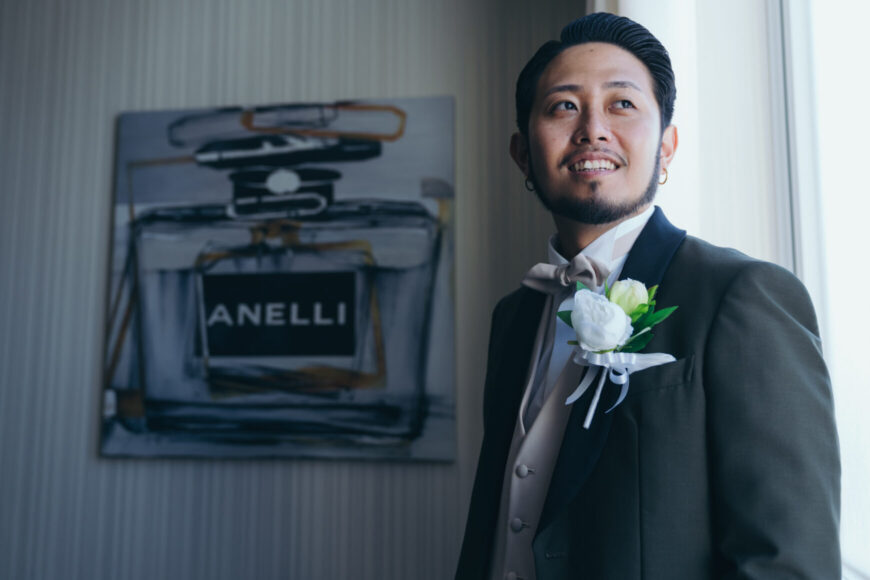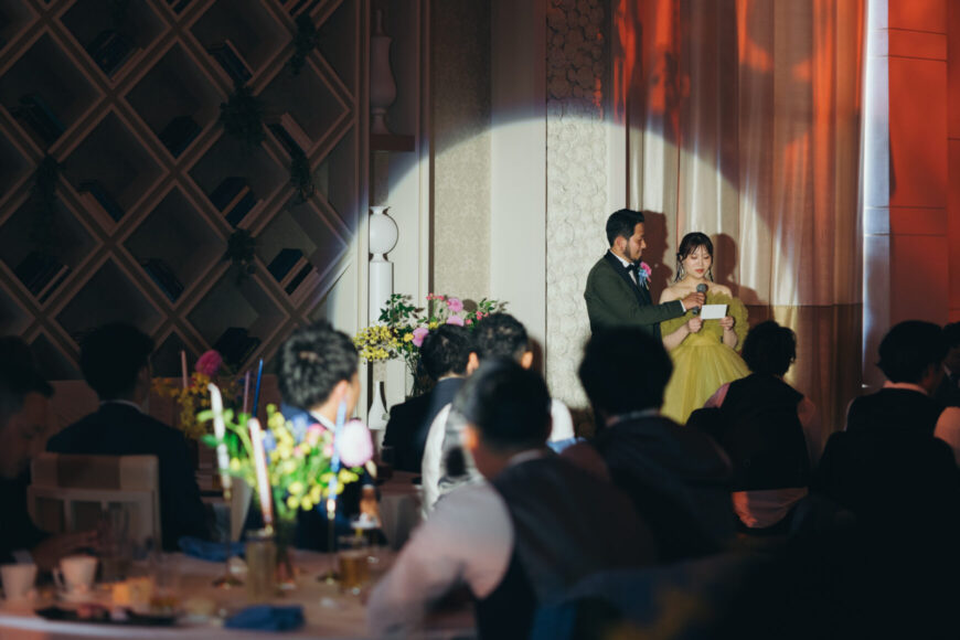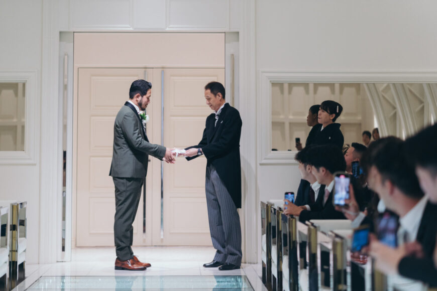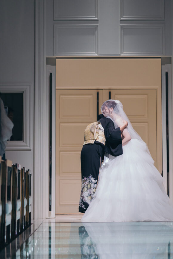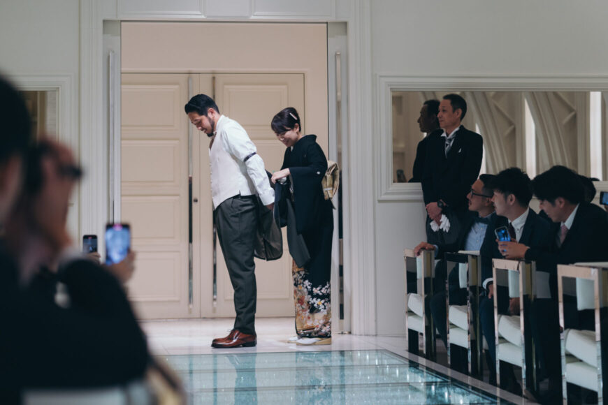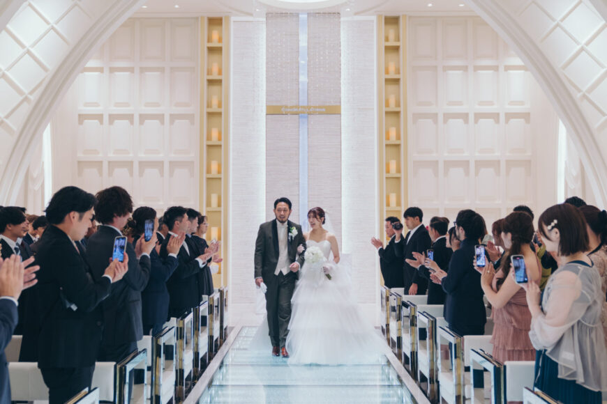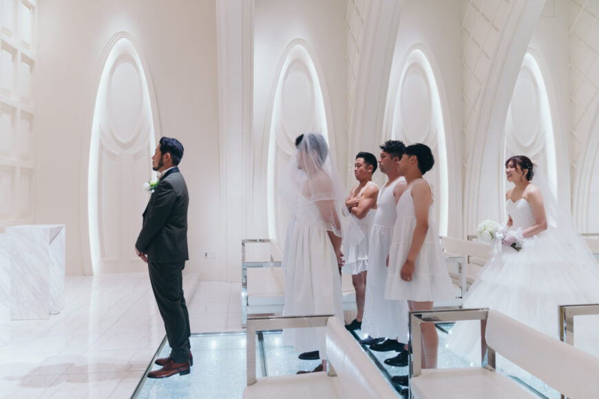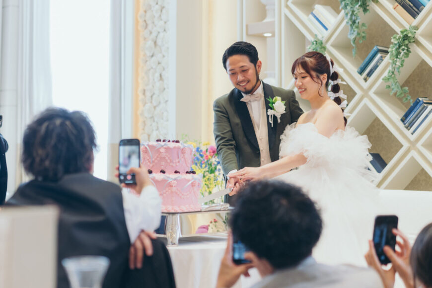 小さな頃の写真を等身大にしてお迎えする演出は、おふたりらしさと温かさに溢れていて、