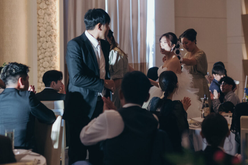おふたりの幼い頃の姿に、今日の幸せな笑顔が重なり、