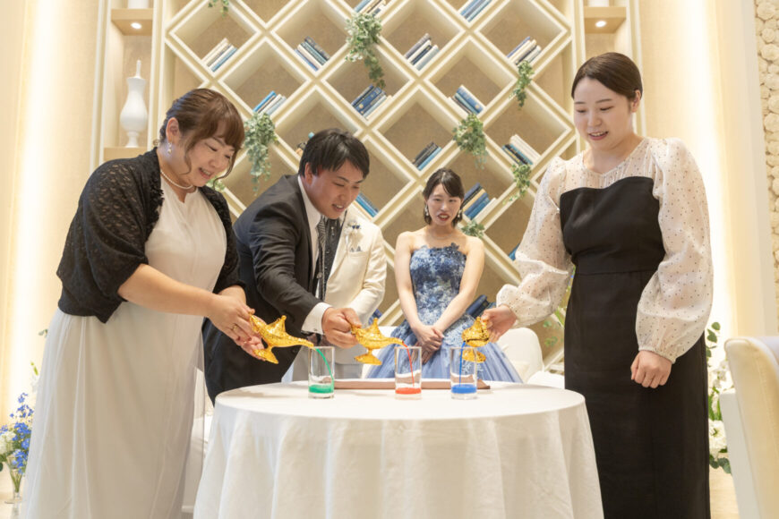 新郎新婦様、そしてご両家の皆様の絆がひとつに重なった、まさに“家族のスタート”を感じる素敵なワンシーンでした。