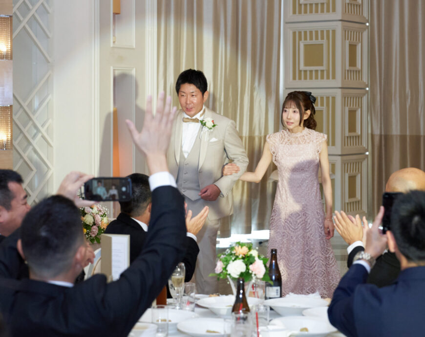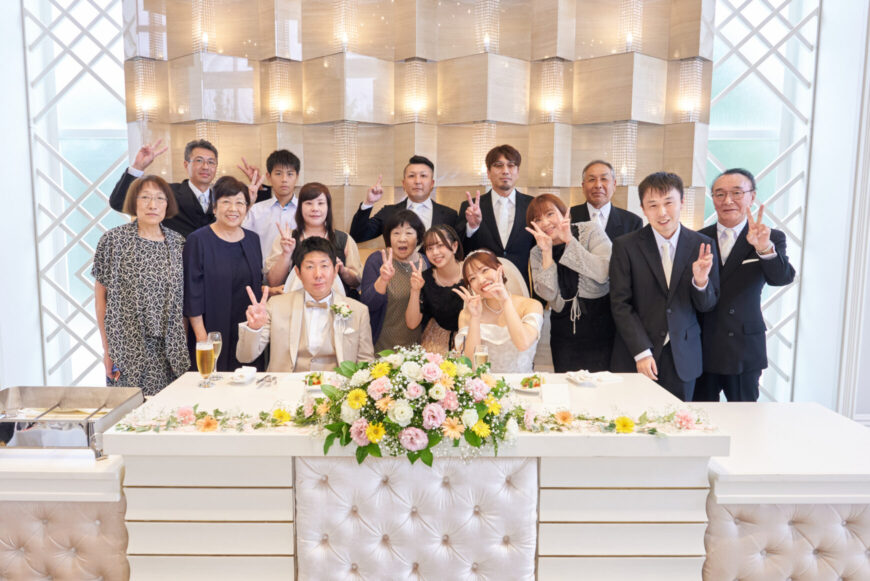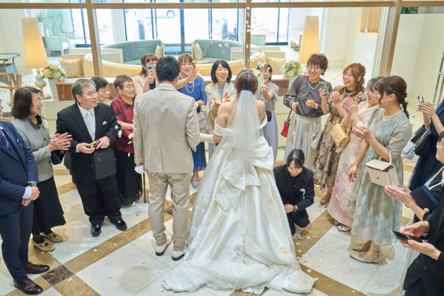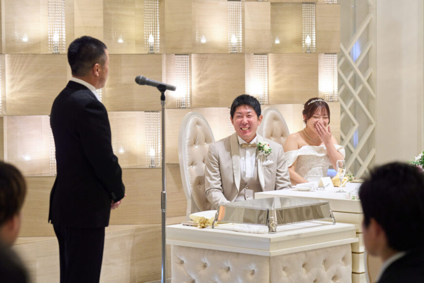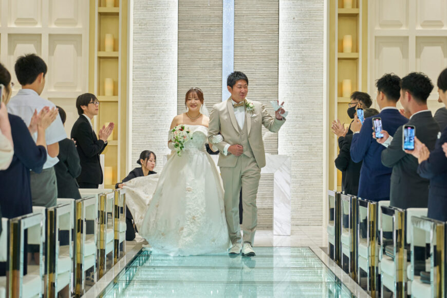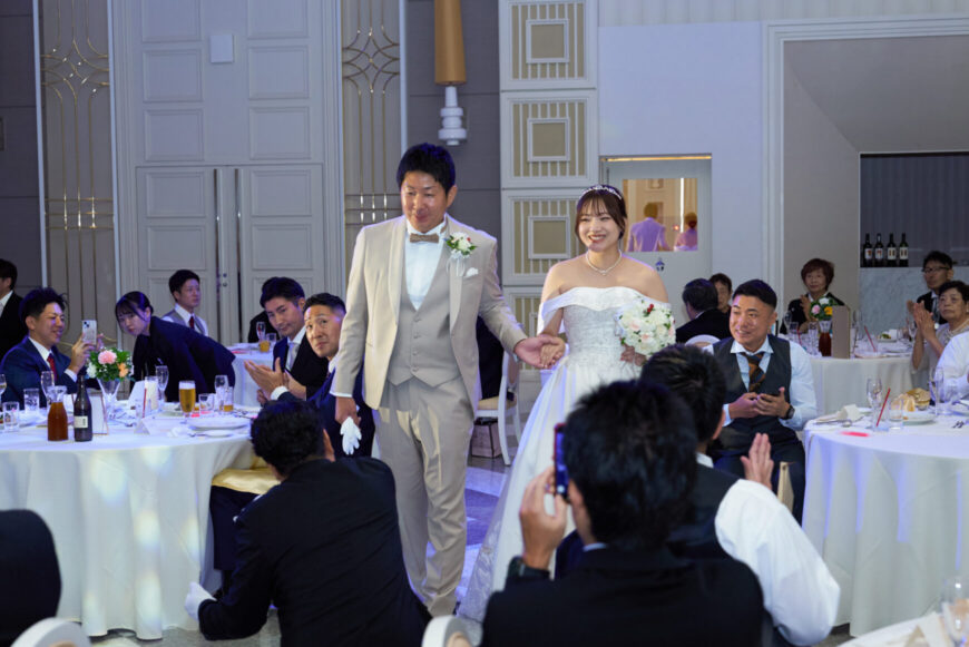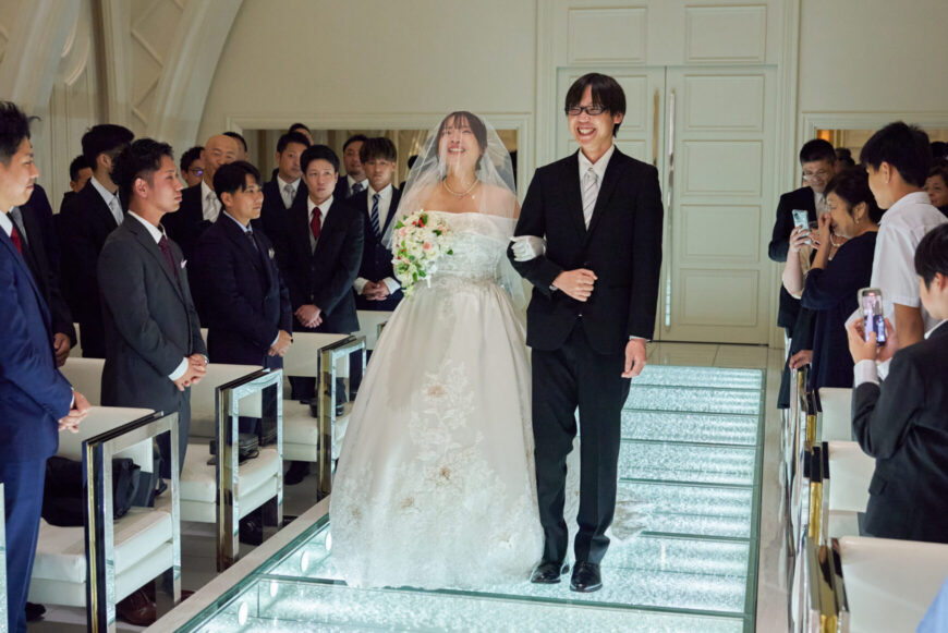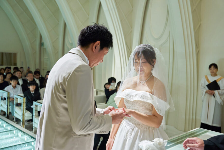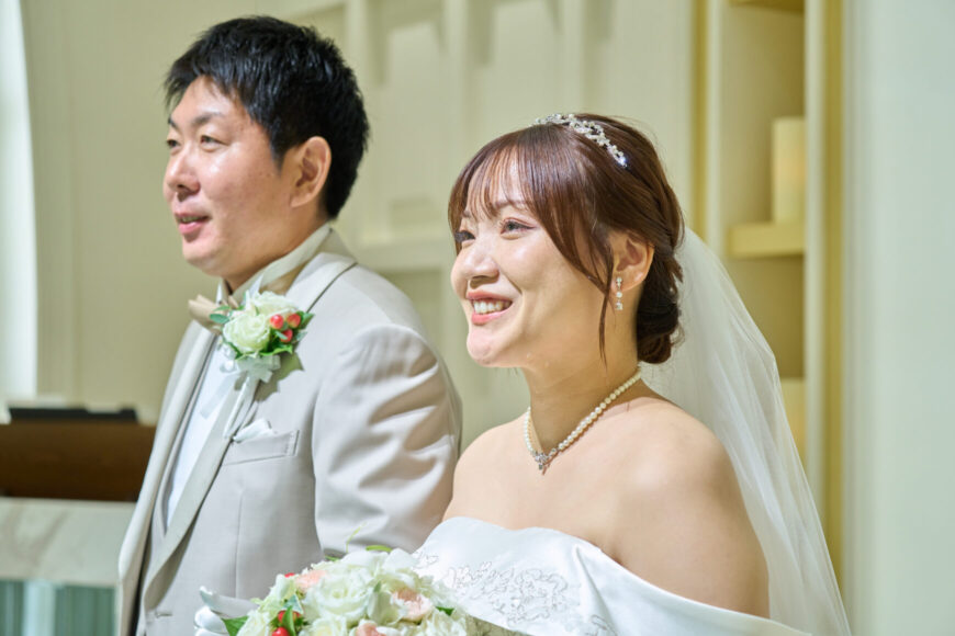 新郎様の少し緊張した表情と、新婦様の満ちた笑顔がとても印象的で、