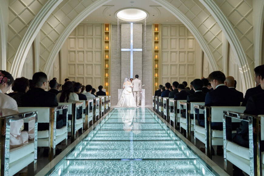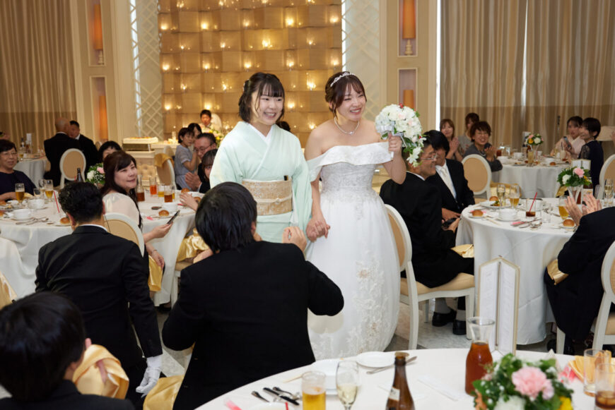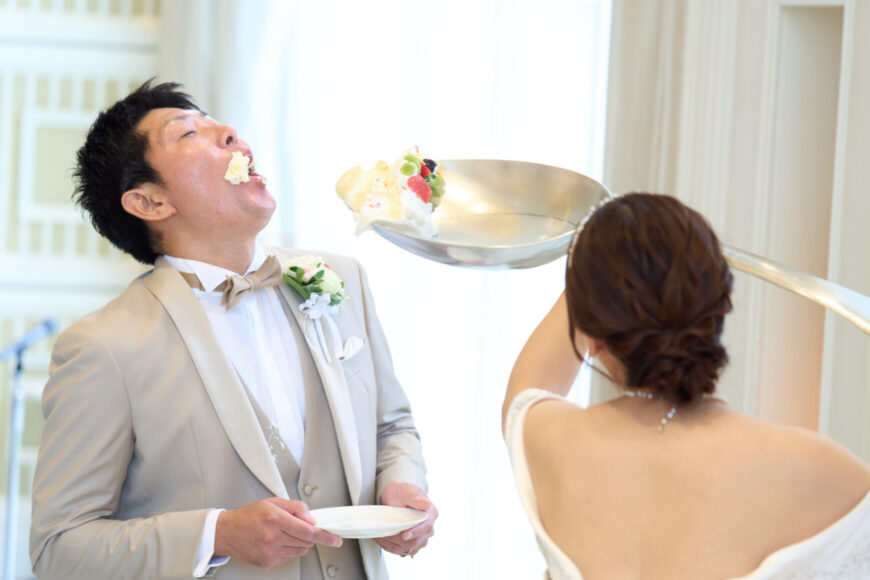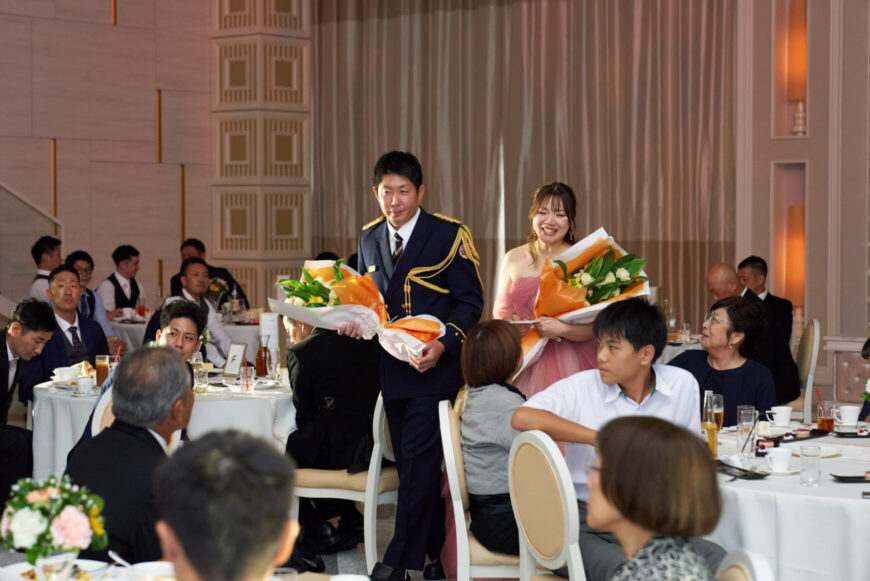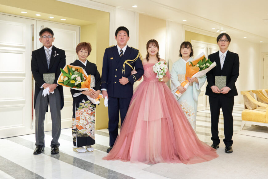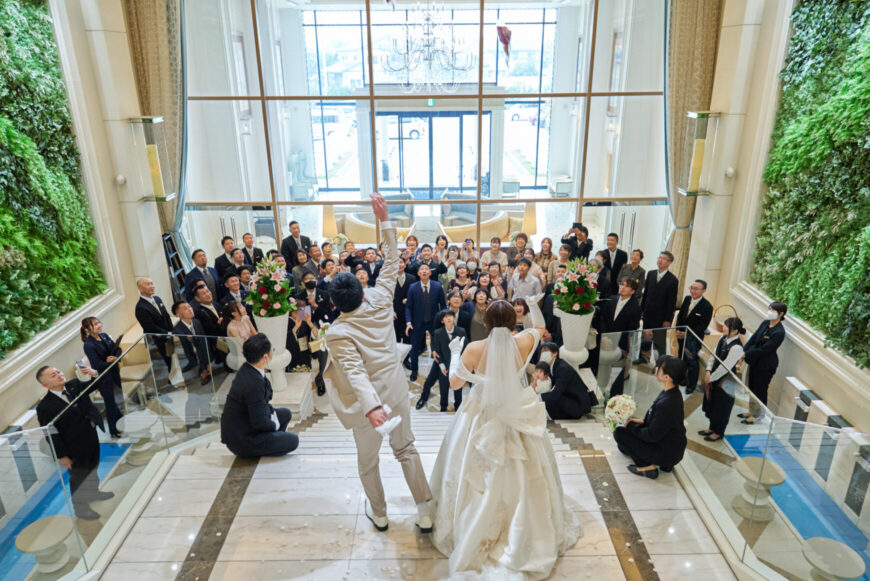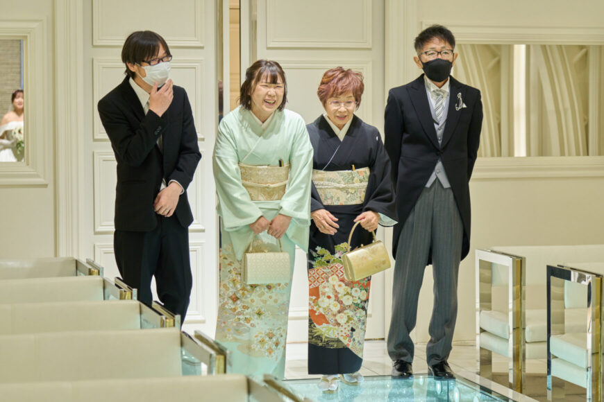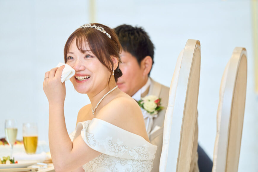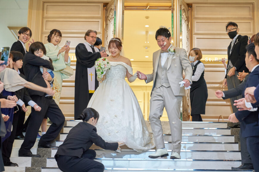 新郎様の少し緊張した表情と、新婦様の満ちた笑顔がとても印象的で、