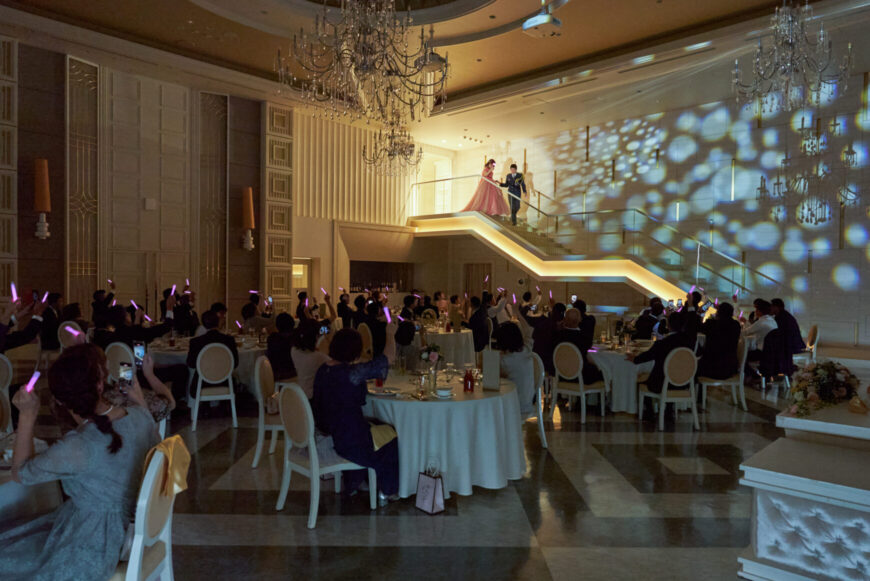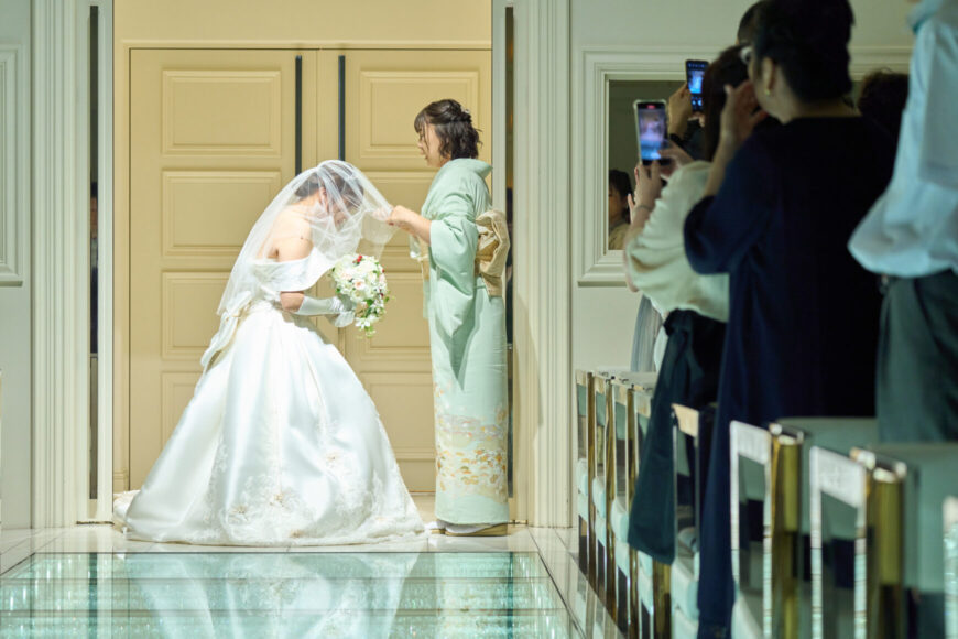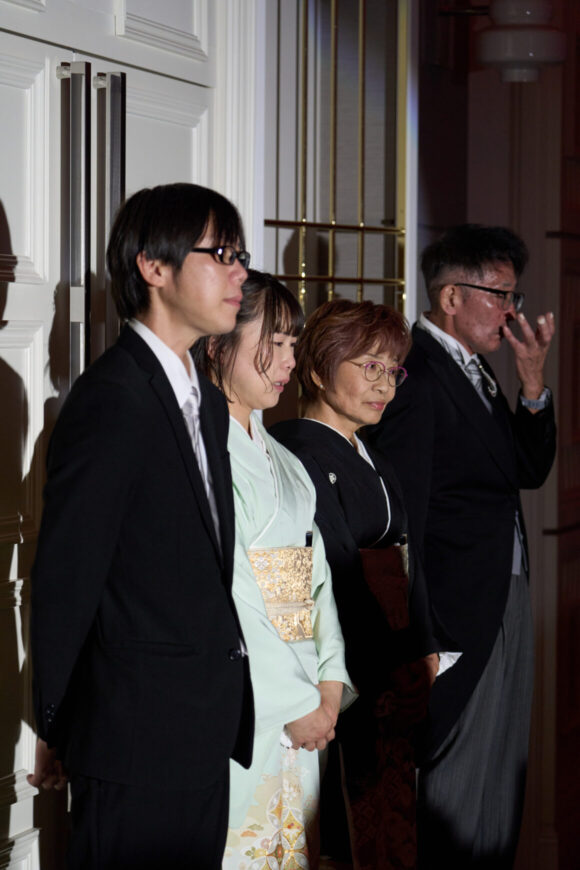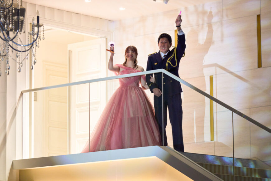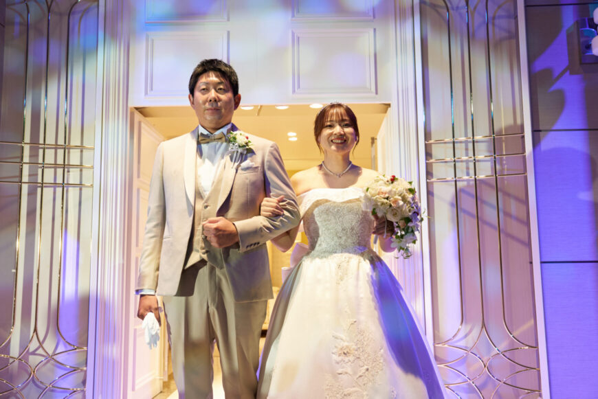 扉の向こうから差し込む光に包まれて登場されたおふたり。