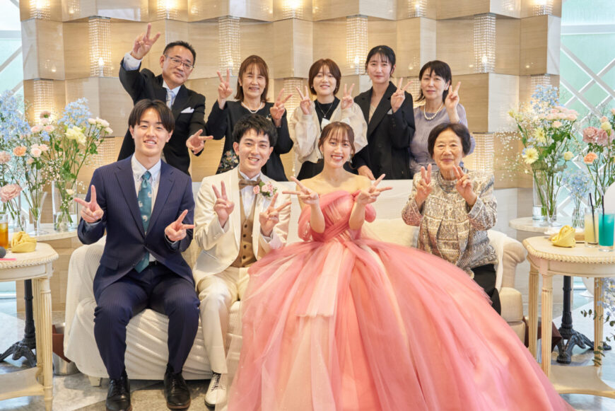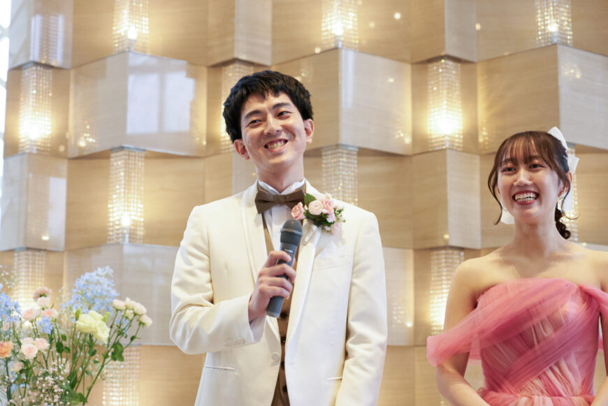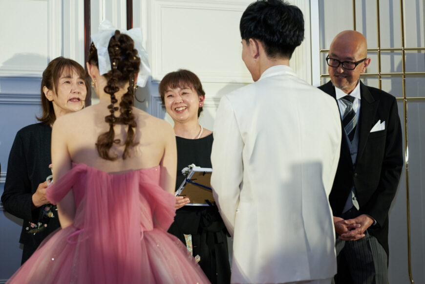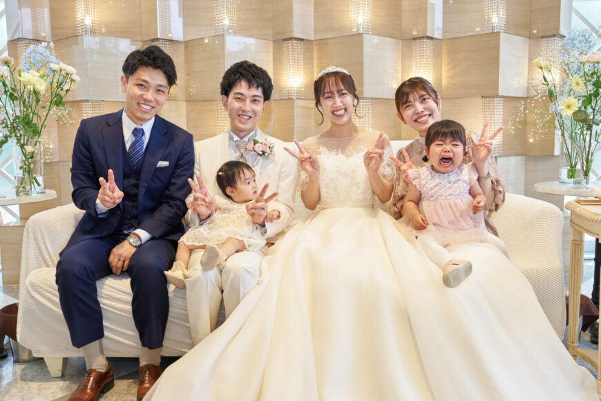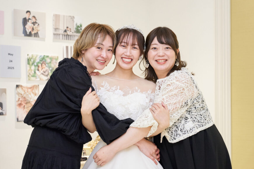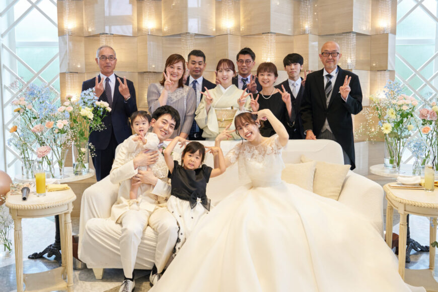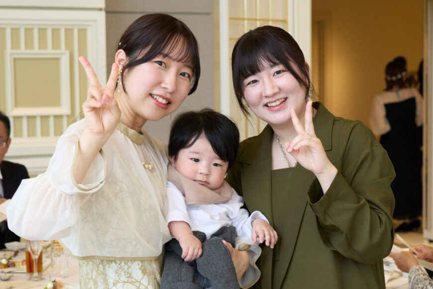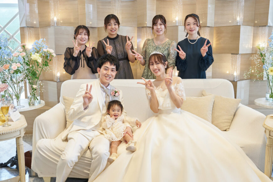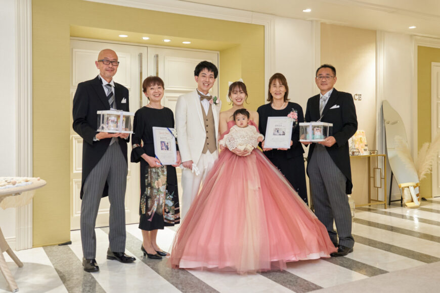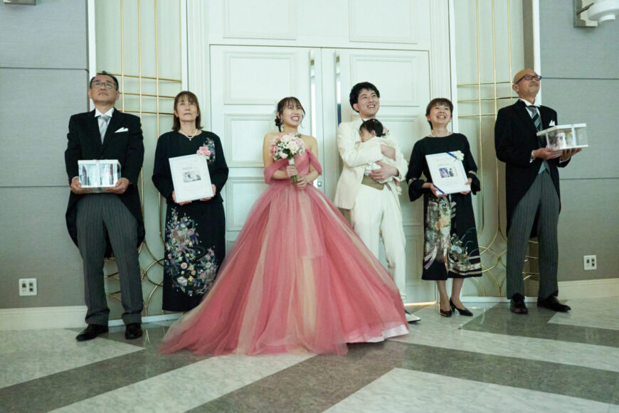 その隣で花束を手に微笑む新婦様の笑顔からは、母としてのやさしさと幸せが伝わってきました。