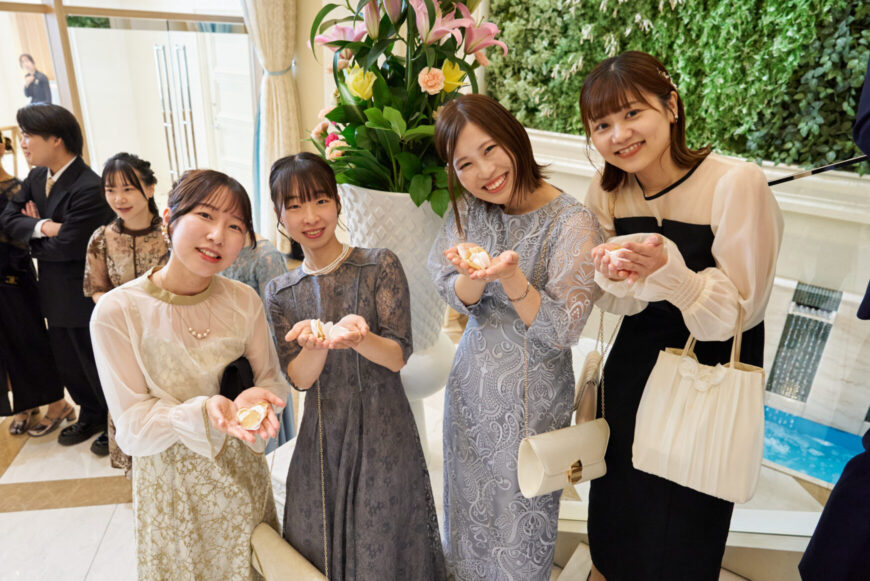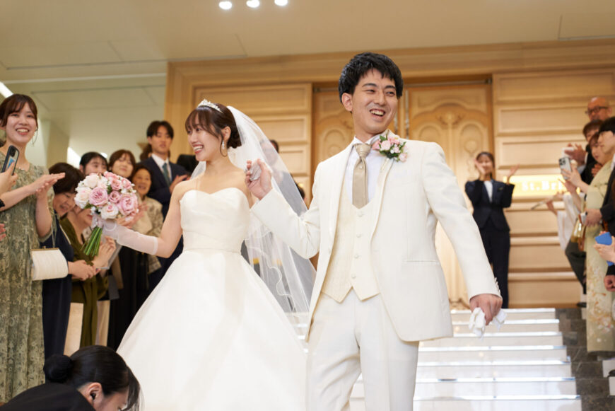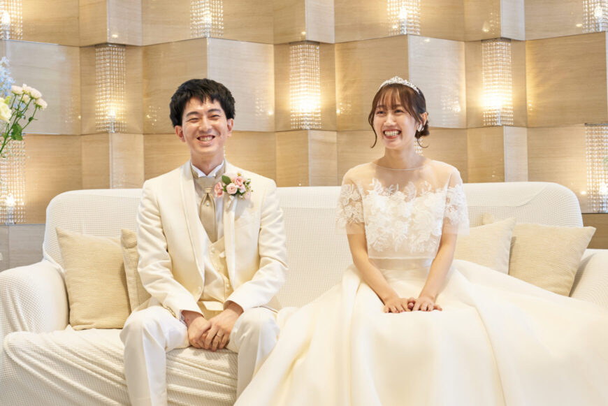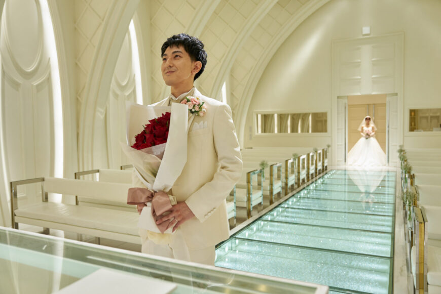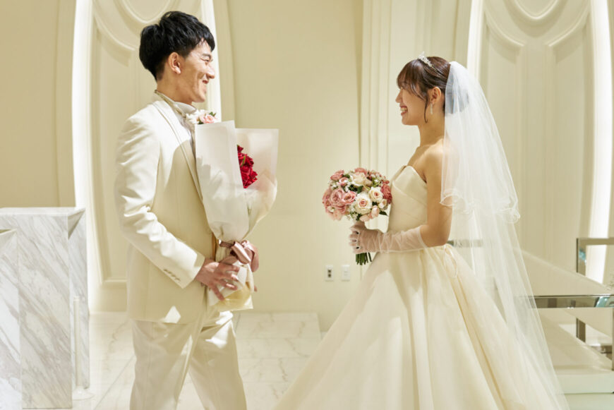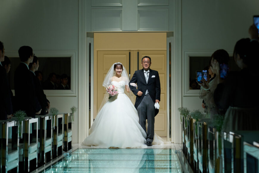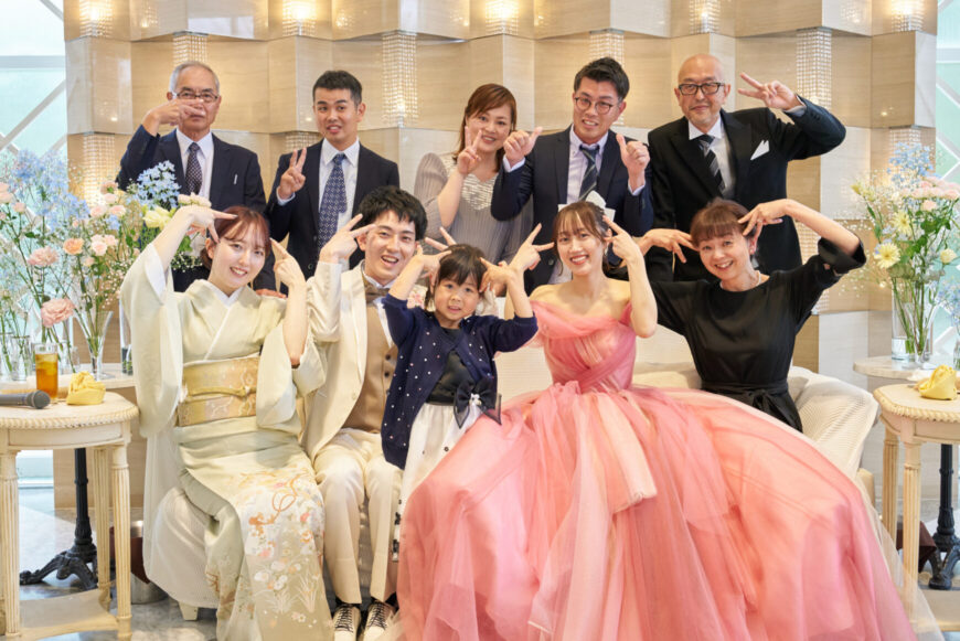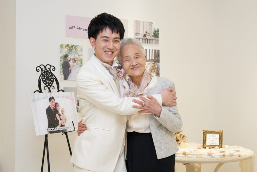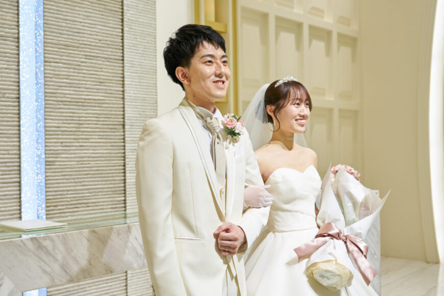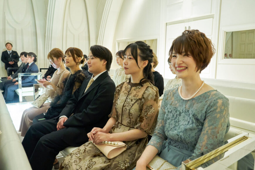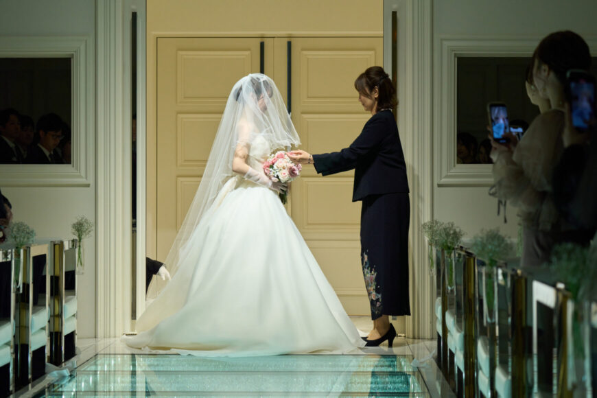 その隣で花束を手に微笑む新婦様の笑顔からは、母としてのやさしさと幸せが伝わってきました。