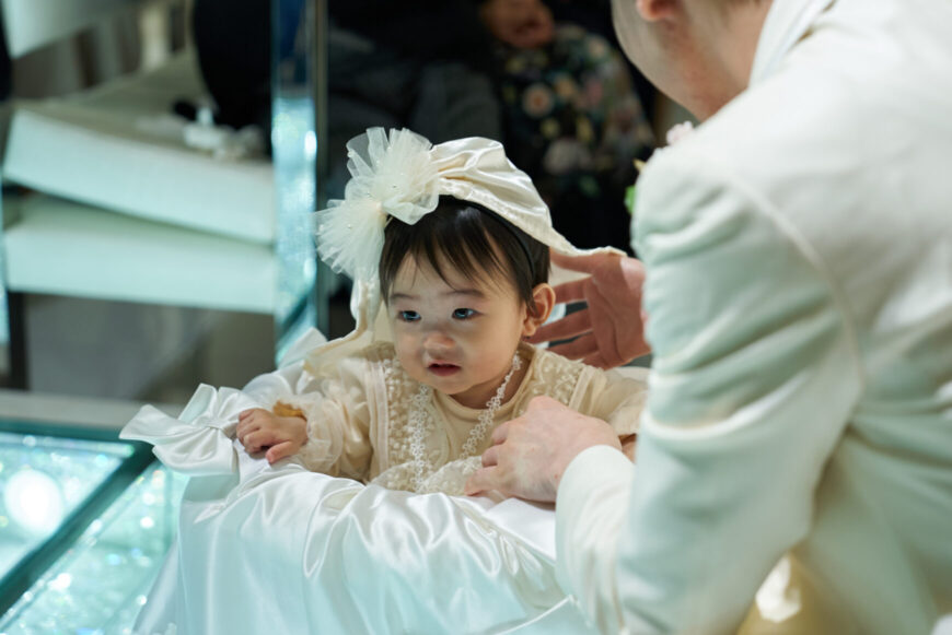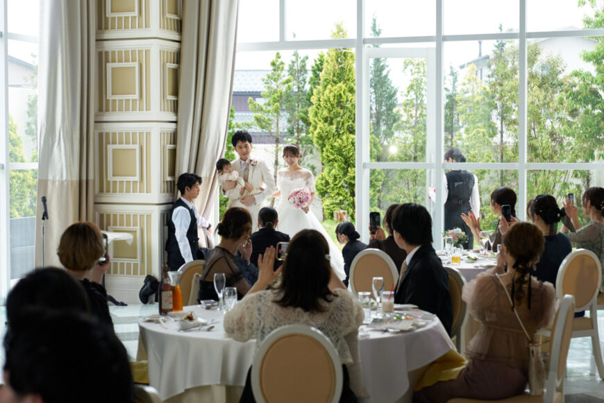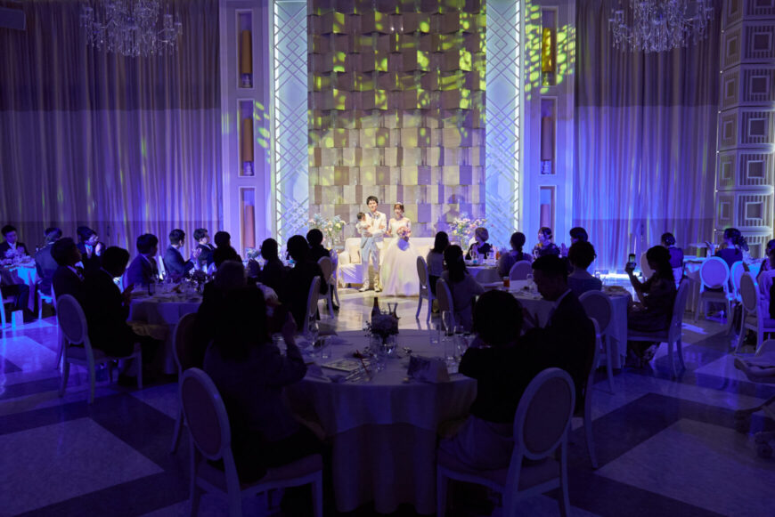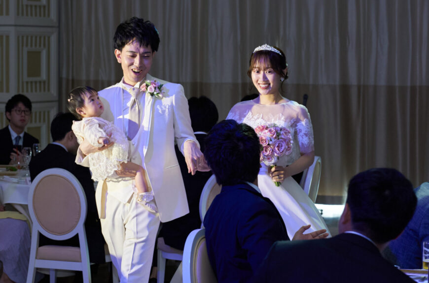 優しい光に包まれた会場は、まるでおふたりとお子さまを祝福しているかのようでした。