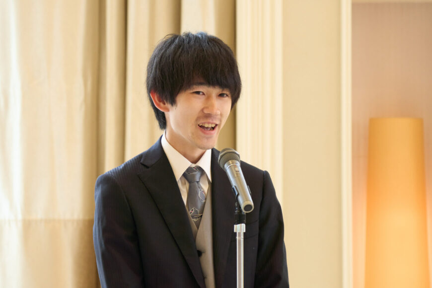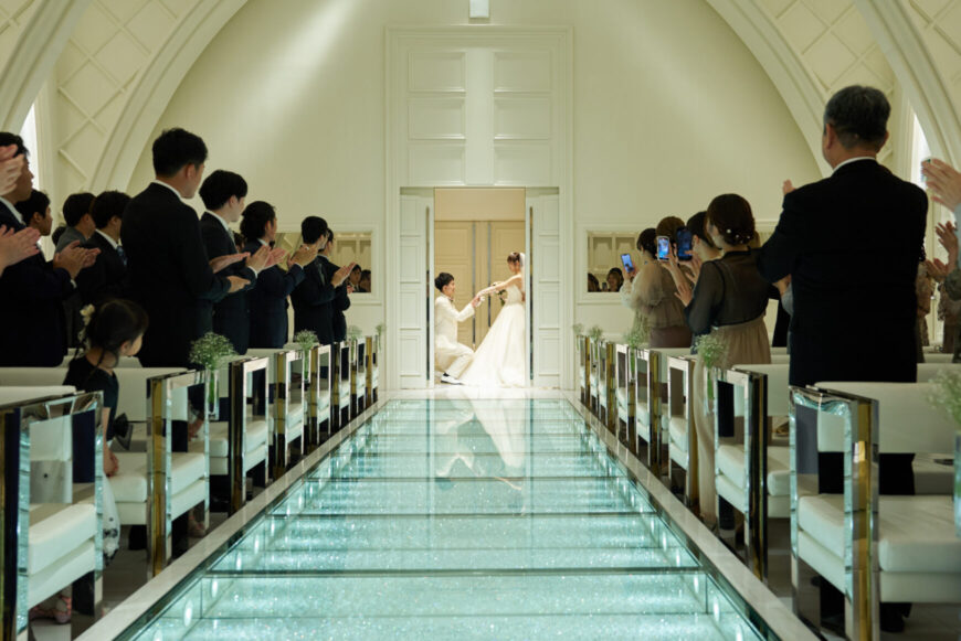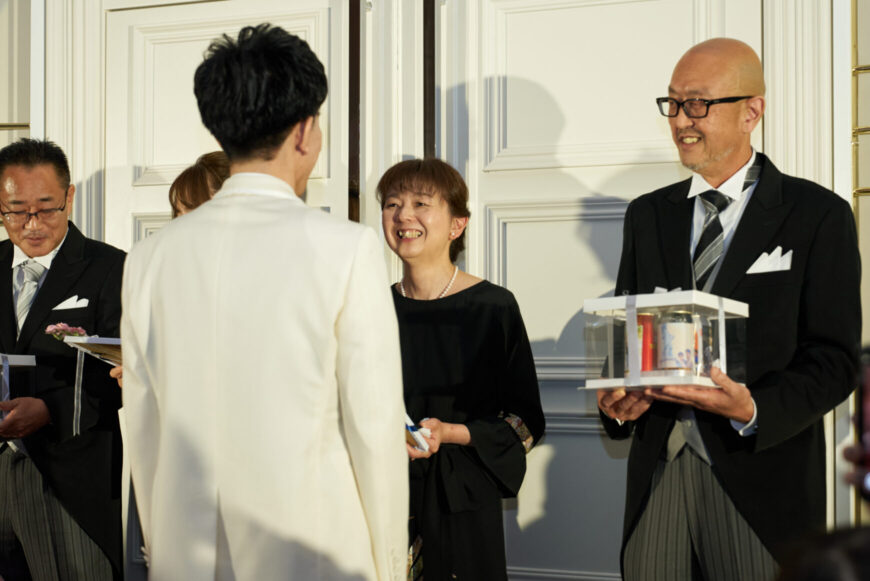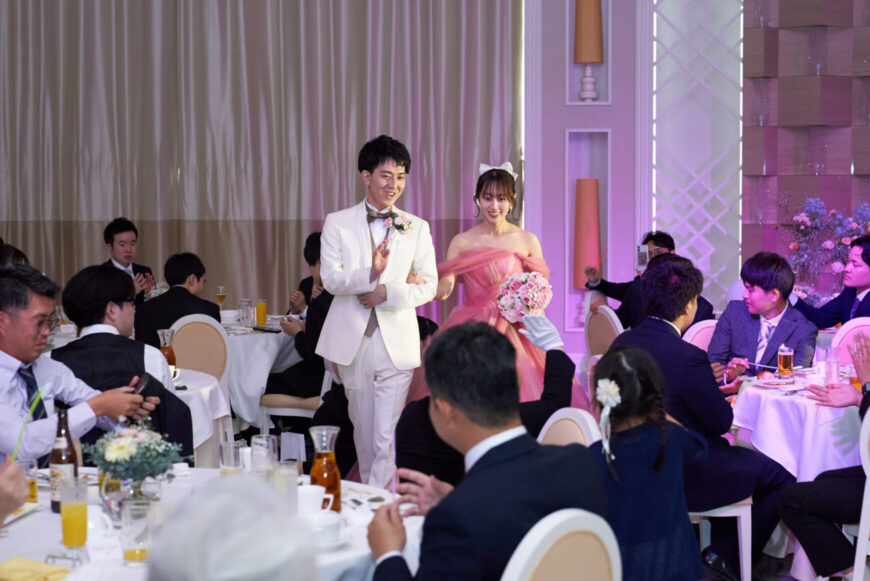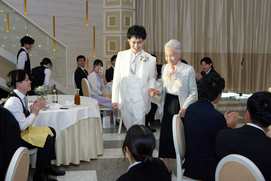 会場のゲストの皆様も、その姿に自然と笑顔になり、温かな拍手が広がります。