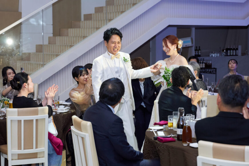 パーティーでは、笑顔が絶えないおふたりらしい演出が続き、