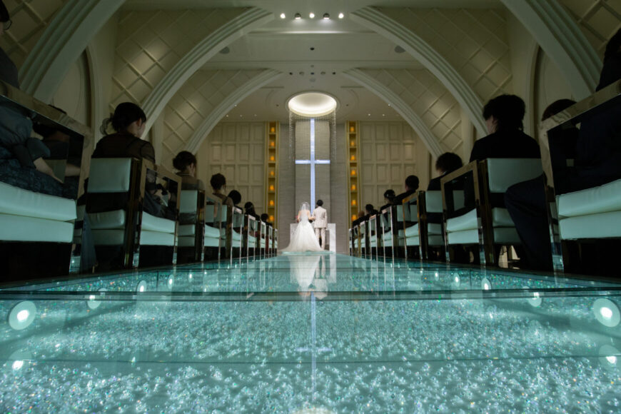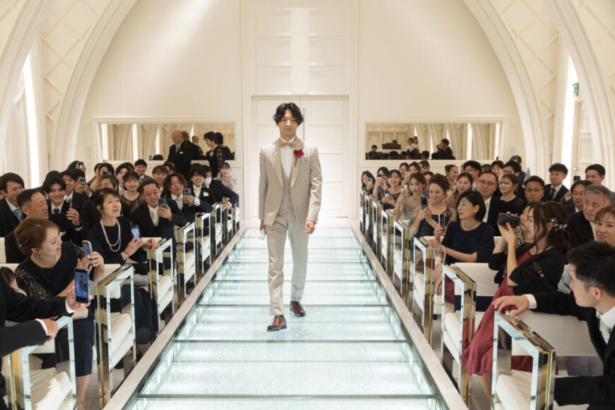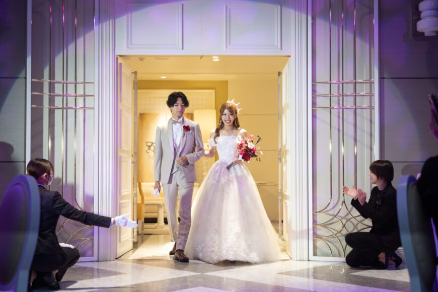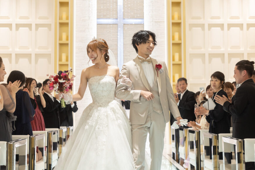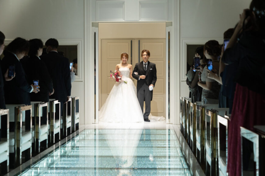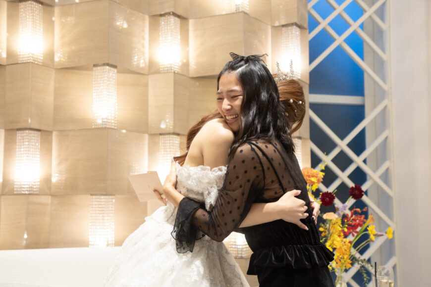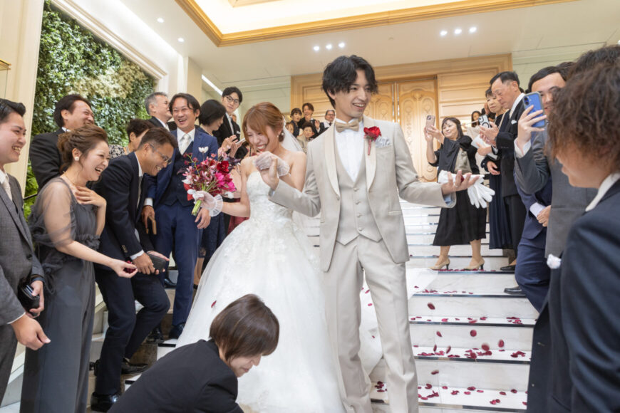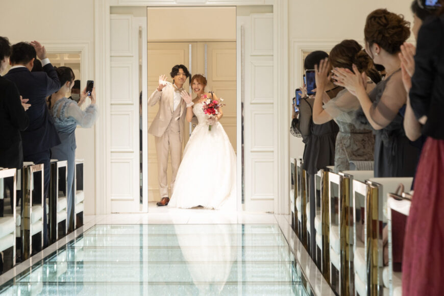 チャペルでの厳かな雰囲気から一転、披露宴ではふたりらしい明るさと笑顔が溢れ、