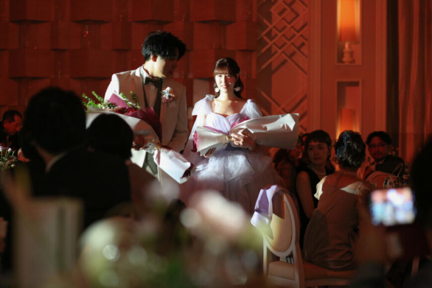 最後のシーンで交わされた贈り物と花束には、これまでの日々を大切に積み重ねてきたおふたりの想いと、支えてくれた方々への深い感謝の気持ちが込められていました。その姿は、会場にいる全員の胸を温め、涙を誘うほどの美しさでした。